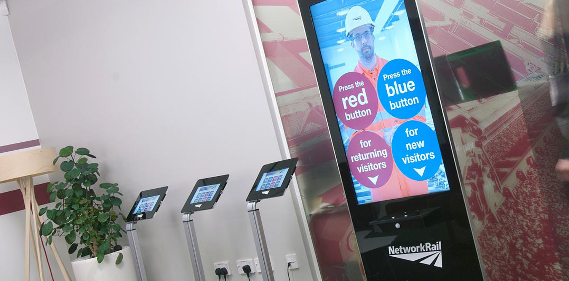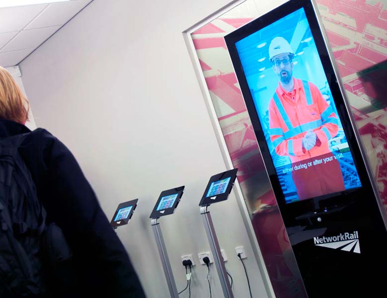 Advanced algorithms were construction to record all inductions, monitor which induction were played and when not in use the kiosk will play Network Rail advertising as well as acting a a people counter to count people walking by the induction kiosk. Fully network connected over cat5 to report weekly statistics automatically.